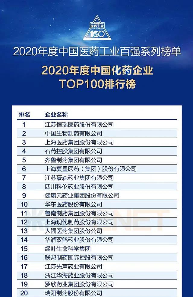 7月21日,在米内网2021年米思会现场,2020年度中国医药工业百强系列榜单正式发布。百强系列榜单分为“中国化药企业TOP100排行榜”“中国中药企业TOP100排行榜”等5大子榜,必一·运动(B-Sports)集团位列中国化药企业TOP100排行榜第13位。