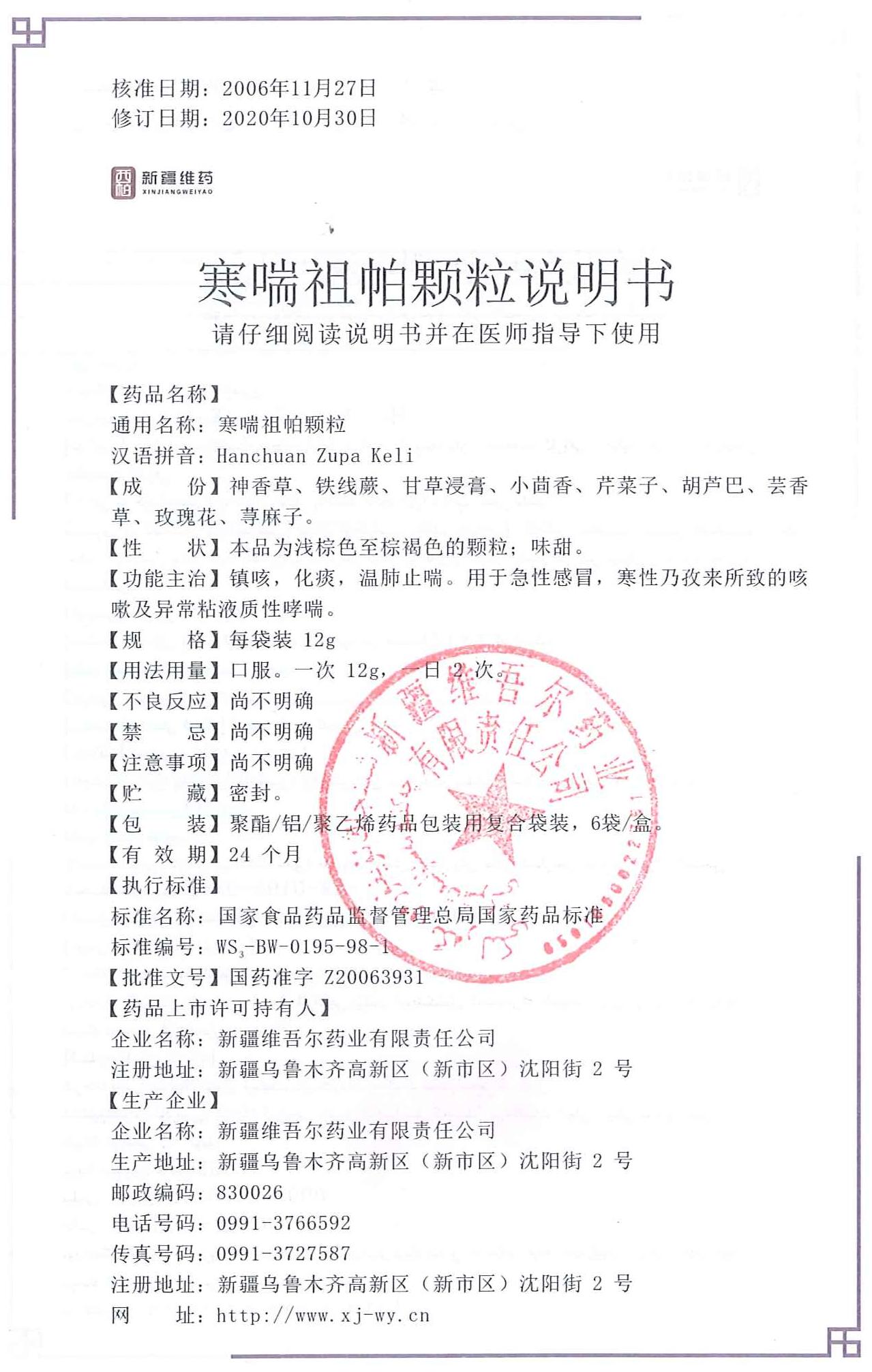 寒喘祖帕颗粒