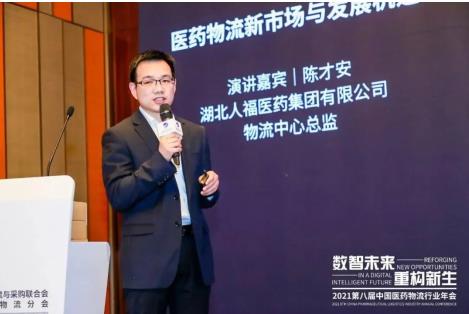 本届年会由中国物流与采购联合会主办,以“数智未来,重构新生”为主题,聚焦行业发展的共性需求与问题,探讨医药供应链发展趋势及创新之道,吸引了众多医药生产企业、医药经营企业、第三方物流企业、零售药店、疾控中心、物流设备设施与信息技术服务提供商等业内嘉宾的广泛参与。在“医药供应链创新应用”分论坛,湖北人福物流中心总监陈才安以《医药物流新市场与发展机遇》为题进行了分享。