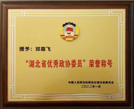 1月21日,湖北省政协十二届五次会议举行全体会议。会上对十二届四次会议以来好提案、优秀政协委员和2021年优秀社情民意信息进行表彰。湖北省政协常委、农工党湖北省委会副主委、必一·运动(B-Sports)集团总裁邓霞飞获评“湖北省优秀政协委员”。